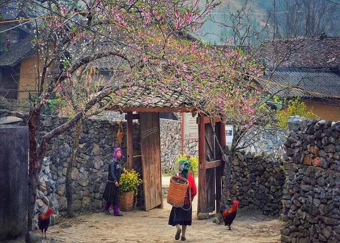 -Ghé thăm Phố Cáo, với những ngôi nhà tường màu đất vàng đặc trưng, cổng gỗ nằm trong hàng rào đá – nét đặc trưng của vùng cao nguyên đá với bốn dân tộc Mông, Hán, Dao, Pu Péo.